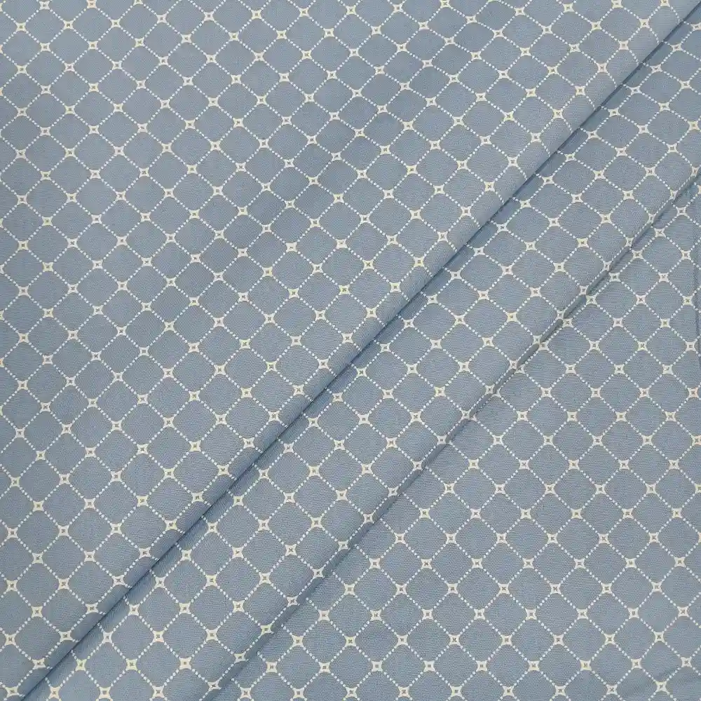 Tela de algodón azul con rombos blancos