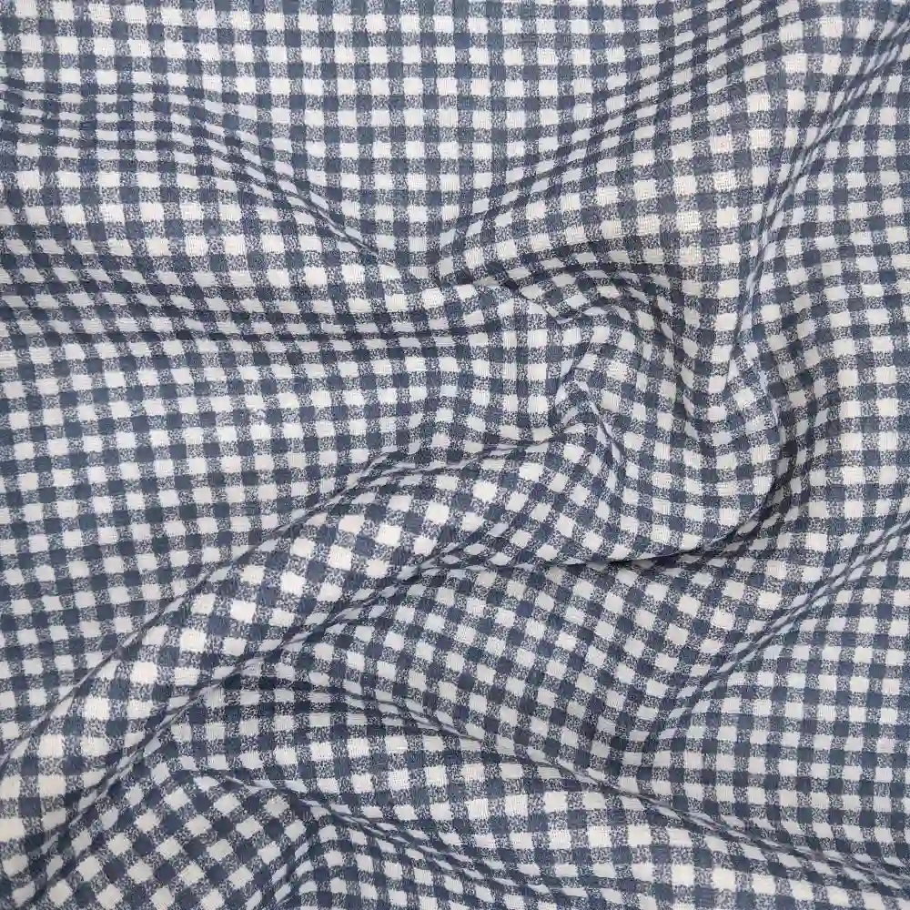 La muselina vichy azul marino combina diseño clásico y comodidad, siendo una opción perfecta para quienes buscan una tela delicada, versátil y con un estampado elegante.