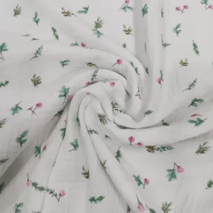 Tela de muselina de algodón estampada flores rosas