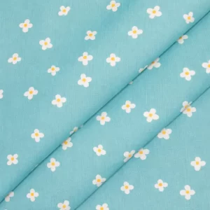 Tela de algodón turquesa con flores blancas